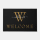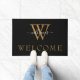 Einfache Schwarz-Gold-White-Script-Monogramm-Begrü Fußmatte