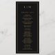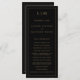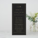Modernes Hochzeitsprogramm mit einem schlichten und dennoch eleganten Design mit traditioneller Gestaltung. Ihre zwei Buchstaben Monografie ist oben, zusammen mit Ihren Details, umgeben von einem dünnen Rand. Alle Designelemente sind goldene Imitate auf schwarzem Hintergrund und können im Designbearbeitungstool geändert werden. Ein minimalistisches Design mit klassischem Ambiente, das sich ideal für eine feierliche Hochzeit eignet.