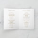 Einfaches gefaltetes Hochzeitsprogramm mit modernem und dennoch elegantem Design. Das Cover hat Ihre zwei ersten Monogramm zusammen mit Ihren Hochzeitsdetails in Imitat Gold auf einem schwarzen Hintergrund. Im Inneren befindet sich Ihre Hochzeitsfeier auf der links Seite und Ihre Zeremonie auf der rechten Seite. Die Rückseite hat Ihre persönliche Danksagung Nachricht. Alle Farben für Designelemente können im Entwurfstool geändert werden. Ein elegantes und stilvolles Design, das sich ideal für ein minimalistisches Paar eignet.