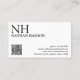 Moderne QR Code Loyalitätskarte mit einem einfachen und minimalen Schwarz-Weiß-Design mit Ihrem Monogramm in einem fett formatierten Schriftart und Ihrem Firmennamen in der oberen links Ecke. Ihre Kontaktdaten befinden sich in der unteren rechten Ecke.