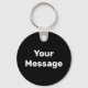 Auf diesem schwarzen Schlüsselanhänger können Sie Ihre eigene Nachricht in weißem Text erstellen.