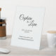 Diese schlichte Schwarz-Weiß-Kalligraphie, die das Schild der Liebe besticht, verleiht einem minimalistischen und traditionelleren oder formellen Hochzeitsempfang einen eleganten, aber modernen Stil. Die lässige Kalligraphie ermöglicht ein antikes Ambiente, während das klassische neutrale Design mit jedem einzigartigen Aspekt Ihrer Ehefeier kombiniert werden kann.