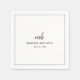 Moderne Hochzeit Napkin in minimalistisch schwarz und weiß mit Ihrem Monogramm in einem eleganten Skript zusammen mit Ihren Namen und Hochzeitstag umgeben von einer Grenze. Der Schriftart und die Grenze können in eine beliebige Farbe geändert werden, indem Sie auf die Schaltfläche "Anpassen" klicken. Ein einfaches und minimales Design, das für jeden Hochzeitsstil gut funktioniert.