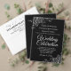 Dieses schwarz-silberne 11 Tisch-Sitze-Diagramm bietet Platz für 110 Gäste an Ihrem Hochzeitsempfang. Das Design zeichnet sich durch eine elegante Schrift-Schrift für den Titel aus, die auf einem schwarzen Hintergrund mit weißem, blasssilberfarbenem Text und einer Vintagen, blumensilbernen Imitat-Folie mit filigranem Rahmen versehen ist.