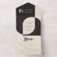 Diese lustigen All-in-One Hochzeitseinladungen zeichnen sich durch ein Vintages Deko-Design in Schwarz und Creme aus. Ihre Gäste können r.s.v.p mit dem Abreißen von voradressierten Bereich. Die Einladung enthält Platzhalter für die Namen der Hochzeitspaare, das Hochzeitsdatum, die Uhrzeit, den Veranstaltungsort, die Anschrift und die Informationen zum Empfang. Die Vorderseite hat eine Blume mit Herz als Mittelpunkt. Der Abschnitt R.S.V.P enthält eine Anfrage zum Antwortdatum, Gastname, Annahme, Anzahl der Gäste, Ablehnung, Anleitung zur Wahl des Betreibers mit drei Auswahlmöglichkeiten.