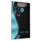 Modernes und elegantes schwarz geblümtes Damastmuster und blaue Wirbel mit zarten Blume. Optionales Monogramm