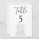 Modernes Hochzeitssitzdiagramm mit "Table", das in einem schwarzen Skript mit der unten abgebildeten Tischnummer und den Gästennamen auf weißem Hintergrund angezeigt wird. Das Design wiederholt sich auf der Rückseite. Um das Sitzdiagramm der Tischnummer zu bestellen, editieren Sie jede Karte mit der Tischnummer und den Namen der Gäste und fügen Sie es Ihrem Warenkorb hinzu. Entworfen, um mit unserer Simple Script Hochzeitskollektion zu koordinieren.