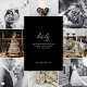Ein sauberes minimalistisches Hochzeitseinladungsdesign mit elegantem weißen Text auf tiefschwarzem Hintergrund. Das Layout ist einfach, modern und konzentriert sich auf eine verfeinerte Typografie, wodurch es sich für zeitgenössische Hochzeiten mit einer klassischen Luxusästhetik eignet.