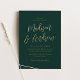 Elegante Einladungen für Hochzeiten mit Ihren Namen, die in einem handgeschriebenen Goldfolienskript mit einem waldgrünen Hintergrund angezeigt werden. Personalisieren Sie die einfachen Goldfolie-Hochzeitseinladungen mit Ihren Hochzeitsdetails. Entworfen, um mit unserer Simple Script Hochzeitskollektion zu koordinieren.