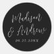 Einfache Script Personalisiert Black and White Wed Runder Aufkleber