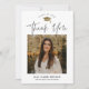 Einfach Script Schwarz und Weiß Foto Abschluss Dankeschön Card mit eleganter goldfarbener Folienkappe und minimalistischer Typografie und einem Foto vorne. Der Rücken hat eine Botschaft des Absolventen. Klicken Sie auf die Schaltfläche Bearbeiten, um dieses Design anzupassen.