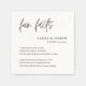 Machen Sie Ihre Hochzeitsfeier noch unvergesslicher mit unseren einfachen Script Black and White Wedding Fun Fakten Napkins. Diese Servietten sind für Eleganz und Charme konzipiert und eignen sich perfekt für Cocktailstunden, Empfang oder Brautpartys. Mit einem minimalistischen Skriptdesign bieten sie einen lustigen und personalisierten Weg, interessante Details über das Paar mit den Gästen zu teilen. Ideal für moderne, traditionelle oder schicke Hochzeitsthemen, fügen diese Servietten eine stilvolle und dennoch funktionale Touch zu Ihrem besonderen Tag hinzu. Sie sind individuell auf Ihre Bedürfnisse zugeschnitten und bieten eine große Ergänzung zu jeder Hochzeitsveranstaltung, von intimen Ansammlungen bis hin zu großen Festlichkeiten.