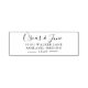 Schönes, sauberes und einfaches Rücksendelabel für Ihre tägliche Post oder Ihren besondere Anlass. Schönes Skript und Text. Nutzen Sie diese Briefmarke für Geschäftsleute oder Gastgeschenke, oder um Ihre Sachen oder Ihre geliebten Romane zu kennzeichnen. So viele Anwendungen für diese wunderbaren Briefmarke und können vollständig angepasst werden.