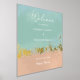 Einfache, moderne Sommer Badestrand Hochzeit Einladung. Modernes Meer und Sand mit einem Hauch von blauer Kunst zeichnend