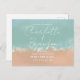 Einfache, moderne Sommer Badestrand Hochzeit Einladung. Modernes Meer und Sand mit einem Hauch von blauer Kunst zeichnend