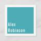 Ein einfaches und minimalistisches Design mit weißem Namen auf türkisblauem Hintergrund auf der Vorderseite, hervorgehoben mit weißem Rand. Auf der Rückseite ist viel Platz für Ihre Details in weiß auf einem blauen Hintergrund.