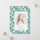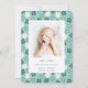 Niedliche, türkisfarbene Blumenkärtchen mit blühenden Blumenmuster, die auf der Vorderseite mit pastellfarbenen türkisblauen, blauen und weißen blühenden Blume auf dem Marinehintergrund versehen sind. 1 Bild Ihres Neugeborenen, das auf dieser Karte (vorne) hinzugefügt werden kann. Das Papier weist schöne runde Kanten auf. Perfekte Karte, um die Ankunft Ihres neuen Babys mit seinen Geburtsdaten anzukündigen. Ideal für Junge und Mädchen. Ideal für alle Jahreszeiten!