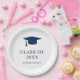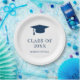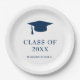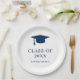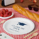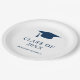 Moderne Papiertafel mit einem einfachen und männlichen Design mit der "Jahrgangsklasse" in großer, mutiger Typografie, mit einem Gradcap und dem Namen des Absolventen in Marineblau auf weißem Hintergrund. Diese Teller sind perfekt für einen Typ-Absolventen und sind eine gute Möglichkeit, um eine persönliche Touch zu Ihrem Abschlussfeier hinzuzufügen.