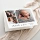 Ein einfaches Type Foto Collage Baby Dankeschön-Karte mit 3 Bildern auf der Vorderseite und einem vollständigen Namen Header und persönliche Nachricht aus der Familie auf der Innenseite. Klicken Sie auf die Schaltfläche Bearbeiten, um dieses Design mit Ihren Fotos und Details anzupassen.