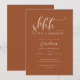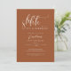 Minimalistische Überraschung Geburtstagsfeier Einladung Karte mit Skripttext, der "schhh... es ist eine Überraschung!" oben steht. Hintergrund ist Terrakotta.