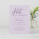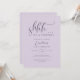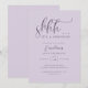 Minimalistische Überraschung Geburtstagsfeier Einladung Karte mit Skripttext, der "schhh... es ist eine Überraschung!" oben steht. Der Hintergrund ist lila.