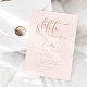 Minimalistische Überraschung Geburtstagsfeier Einladung Karte mit Skripttext, der "schhh... es ist eine Überraschung!" oben steht. Hintergrund ist pfirsichfarben.