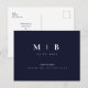 Einfache und leichte Monogramm Navy & White Save t Postkarte