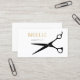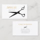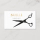 Eine einfache und moderne Visitenkarte in Schwarz und Gold mit einer Silhouette von Haarschnitt-Scheren. Perfekt für die berufliche Haarstylistin.
