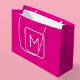 Einfache und moderne Monogramm | Rosa und Weiß Große Geschenktüte