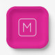 Einfache und moderne Monogramm | Rosa und Weiß Pappteller