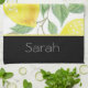 Einfache Aquarellfarben Lemon Blätter Gelb und Schwarz Mit Monogramm Küchenhandtuch