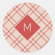 Einfache Weihnachts-Rot- und Creme-Monogramm-Karos Runder Aufkleber