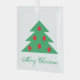 Einfache Weihnachtsbaum Grün Rot Merry Script Glas Ornament. Festliches Design mit Weihnachtsbäumen mit roten Kugeln und Schneeflocken auf dem Grün. Die Farben sind rot und grün. Sie können den Text ändern.