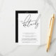 Minimalistische Schwarz-Weiß-Script-Typografie Hochzeitsdetails-Karten - Klassische Eleganz in einer sauberen Ästhetik. Erhöhen Sie Ihre Hochzeitsankündigung mit unseren modernen Schwarzweiß-Schriftzeichen-Detailkarten, eine zeitlose Wahl für Ihren besonderen Tag. Diese Detailkarten verbinden klassische und elegante Designelemente nahtlos mit einer weißen Ästhetik und schaffen einen auffallenden Kontrast, der einen formalen und raffinierten Ton Set. Die Einfachheit des Schwarz-Weiß-Farbschemas und die Eleganz der schwarzen Typografie machen diese Detailkarten zu einer perfekten Wahl für Paare, die eine einfache, aber wirkungsvolle Aussage suchen. Wählen Sie diese Einladung, um Ihre Liebe in einer klassischen und modernen Fusion lassen