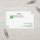 An der Rückseite der Karte, sind alle Details in der Mitte. An der Spitze gibt es das vertraute grüne Logo, Kontaktdetails und zwei Sloganwahlen, damit Sie Ihr Geschäft publizieren.