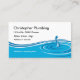 Klempnerarbeit-Dienstleistungsunternehmenkartenschablone in einem übersichtlichen Design mit Wasser im Hintergrund- und Textplan, den Sie für einen Klempnerarbeitauftragnehmer besonders anfertigen können, im Wasserfilterservice oder im unabhängigen Klempner.