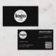 Modernes und berufliches Design für Visitenkarten. Einfaches Logo, benutzerdefinierter Text und QR-Code für Ihr Unternehmen mit weißen Details auf schwarzem Hintergrund. Ersetzen Sie das Logo und den Text durch Ihren eigenen, um es anzupassen. Fügen Sie Ihre URL hinzu, um einen QR-Code zu erstellen (oder löschen, wenn nicht nötig).