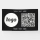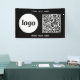 Einfaches Logo mit Text und QR-Code, um Ihr Unternehmen zu fördern. Ersetzen Sie das Logo und den QR-Code durch Ihren eigenen, und ändern oder entfernen Sie den Text, um ihn anzupassen. Minimalistisch und beruflich, um Ihre Marke widerzuspiegeln. Weiß auf schwarzem Hintergrund.