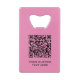 Einfaches Firmenlogo pinkfarbener Flaschenöffner, fügen Sie Ihren eigenen QR-Code und benutzerdefinierten Text auf die Rückseite. Ideal für ein berufliches kleines Unternehmen. Bitte nutzen Sie den unten stehenden Button für die Nachricht, um weitere Anpassungen und spezielle Anfragen zu erhalten. © Zoe Chapman Design