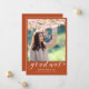 Schicken Sie Ihrer Familie und Ihren Freunden eine einzigartige personalisierte Foto Abschluss Ankündigung, um sie zu wecken. Dieses moderne Template-Design zeigt Ihr Foto in orange und unten in weiß Skript gerahmt ist das Wort "Graduate" mit Ihrem Namen, Schule und Jahr zu personalisieren. Die Rückseite der Karte hat ein Bild von einem schwarzen Grade-Kappe mit Diplom und "Klasse von 20XX" in einfachen schwarzen Typografie. Designed by artist ©Susan Coffey.