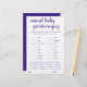 Tierschwangerschaft Quiz Babydusche oder Geschlecht enthüllen Party-Spiel (mit Antworten unten) mit einem lustigen, lässigen handgeschriebenen blüh-Skript. ANTWORTKEY: Pig-122, Kangaroo-37, Horse-336, Cat-63, Rabbit-33, Elephant-645, Enck-28, Sheep-148, Cow-284, Whale-360, Lion-108 Hund-63, Maus-20, Giraffe-419, Bear-220, Chimpanzee-243, Ziege-150 Für andere Farben oder passende Produkte, besuchen Sie bitte den JustFharryn Zazzle Store, oder kontaktieren Sie den Designer, c/o Fharryn@yahoo.com Alle Rechte vorbehalten. #zazzlemade