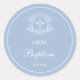Einfaches Blumenkreuz auf hellblauer Taufe Runder Aufkleber