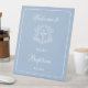 Einfaches Blumenkreuz auf hellblauer Taufe Willkom Sockelschild