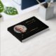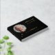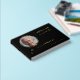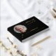 Gästebuch mit individuellem Foto, gerahmt durch einen goldenen Folienkreis und reale Folientexte auf minimalistischem Schwarz. Ein einfaches chic Gästebuch für eine Beerdigung, Feiern des Lebens oder Gedenkgottesdienst und für andere Situationen anpassbar. Ein wertvoller Sake für diejenigen, die dahinter links sind.