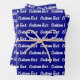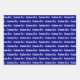 Auf diesem marineblau verpackten Papier ist ein Muster aus weißem Display-Text. Der Text ist ein elegantes weißes Skript. Sie können den Text bearbeiten, um einen Namen oder eine andere benutzerdefinierte Nachricht anzuzeigen.