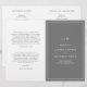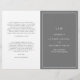 Einfach gefaltetes Hochzeitsprogramm mit modernem, aber elegantem Design mit Ihren beiden ersten Monogrammen und Ihren Details, umgeben von einem dünnen Rand auf der vorderen Abdeckung. Im Inneren befindet sich Ihre Hochzeitsfeier auf der links Seite und Ihre Zeremonie auf der rechten Seite. Alle Designelemente sind in mittlerem Grau und Weiß gehalten und können im Designbearbeitungstool geändert werden. Ein elegantes und stilvolles Design, das sich ideal für ein minimalistisches Paar eignet. Diese billigen Hochzeitsprogramme werden auf Papierbögen gedruckt, um eine preisgünstige Option zu erhalten.