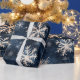 Einfach dunkelblau mit Schneeflocken-Muster ist perfekt zum Verpacken von Geschenken. Es sind passende Geschenketiketten verfügbar. AI unterstützte Grafik, die mit kommerziellem Einsatz erworben wurde. Kunstwerk: FreyasDigitalKunfts