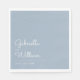 Einfache, staubige, blaue und weiße Servietten. Ein klassisches Design, das das Set der fröhlichen Paarnamen in einem eleganten Drehbuch über das besondere Datum hinaus zeigt. Perfekt für Hochzeiten, Verlobungen und Jubiläumsfeiern.Entwickelt von Thisisnotme©
