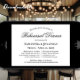Diese schöne Probe-Dinner Einladung ist einfach und elegant zugleich. Es zeichnet sich durch ein Schwarz-Weiß-Design mit extravaganten Schriftzeichen und Platz für alle Informationen über die Probe und das Abendessen, um Ihre Hochzeitsfeier informiert behalten.