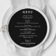 Eine Karte für das Abendessen auf schwarz (oder einer beliebigen Farbe) und eine schicke Schrift in weiß zeigt Ihre Menüwahl. Ideal für einen modernen Hochzeitsempfang, ein Hochzeitsdinner, ein Jubiläum-Party oder ein besonderes Probe mit einem Dinner. Wählen Sie JEDEN FARBHINTERGRUND, jeden FARBTEXT, jeden SCHRIFTART! Lassen Sie sich einfach mit Ihrem Dinner-Menü und Details persönlich verwöhnen.